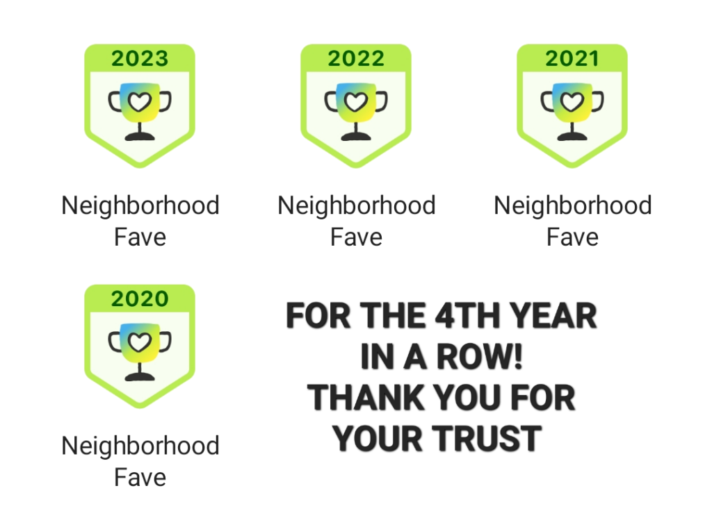 WE’RE A NEXTDOOR NEIGHBORHOOD FAVORITE FOR THE 4TH YEAR IN A ROW!