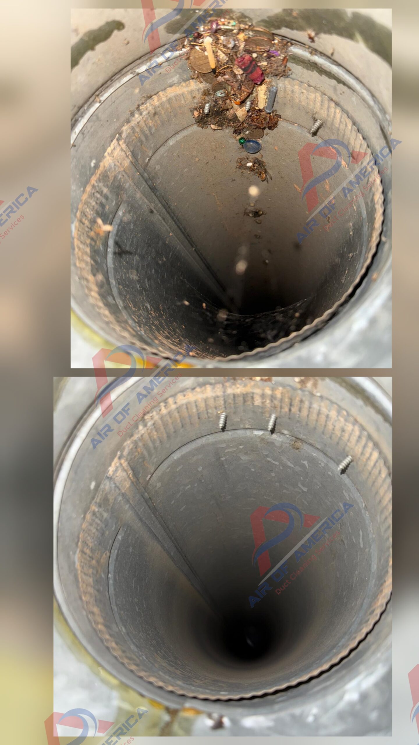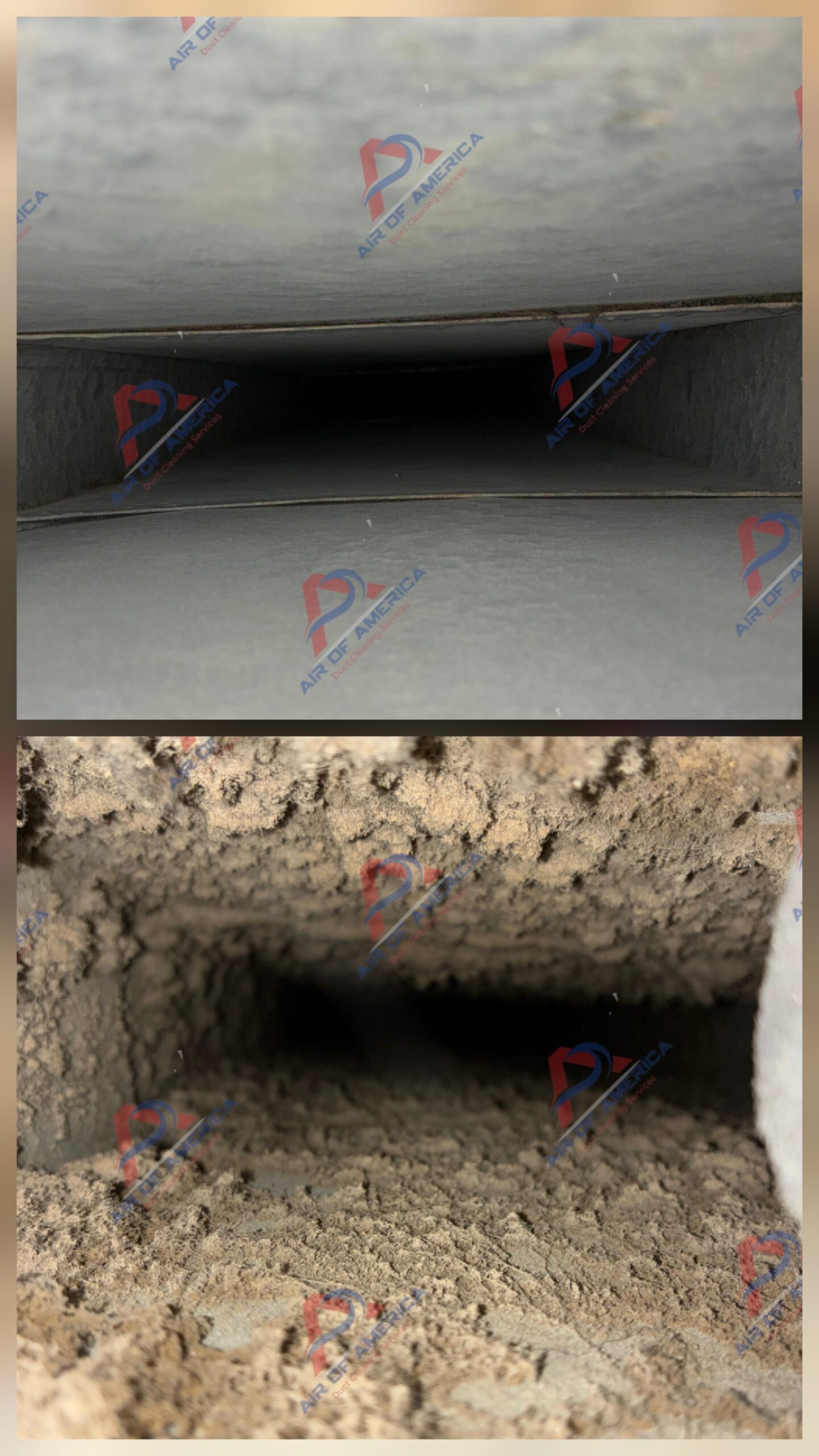 Real air duct cleaning service performed by Air of America in Metro Atlanta.